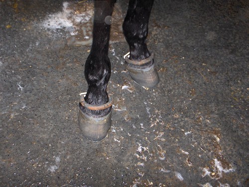 Det er litt lett å glemme det og finne på masse knep. Første ting er jo å sørge for mest mulig tid ute og se på sikt om det kan bedres. Selv om ringer rundt høvene kan hjelpe en stund må du jo ikke glemme at du har en hest som - hvis han kunne velge - helst vil være ute.