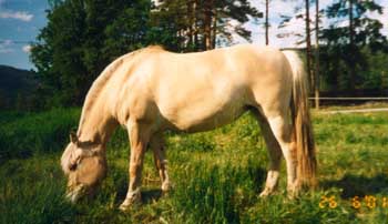 Skal muligens selge fjordinghoppa mi født 1.mai 1990. Hun er en nydelig hoppe som har hatt 3 føll. Hun er ikke treg, men er villig og grei på tur og på bane. Har ikke startet noe stevne men er 3.pr i Lyngdal da hun var 4-5 år gammel... Hun har hoppet 80 bane i sin tid og 1.20 m enkelt hinder. Er en super hest med litt trening. Er en fin kjørehest også. Kjørt 3 bryllup med henne. Har også blitt brukt i nå 7 år til ridning for psykisk utviklings hemmede jenter. Tålmodig dame :) Hun er snill å sko - har kjempe gode høver. Hun er grei på henger - men det er ikke så gøy å gå på alltid. Hun er litt små redd for veterinæren med sprøytene, men det er bare litt trøst så går det bra :)